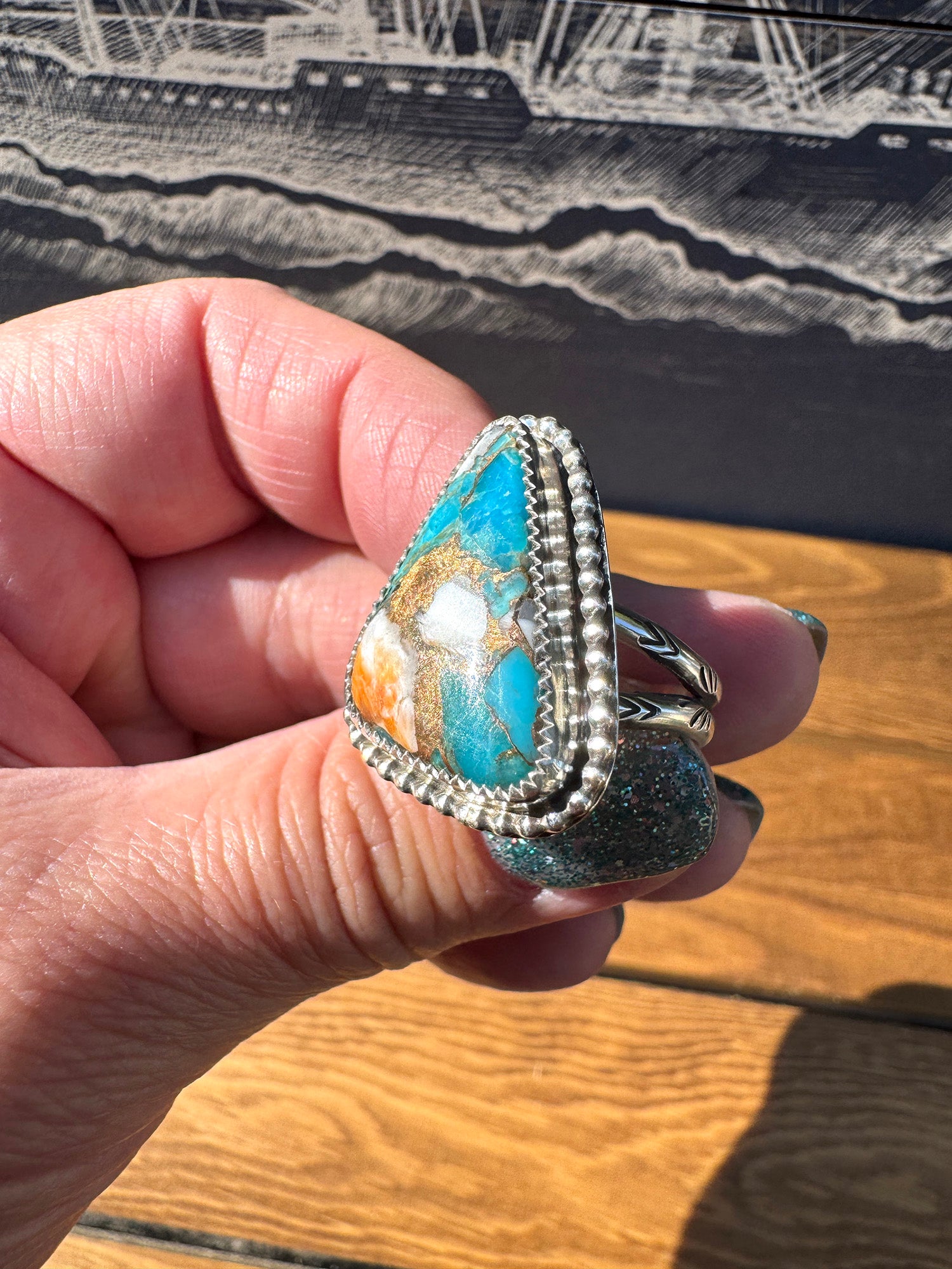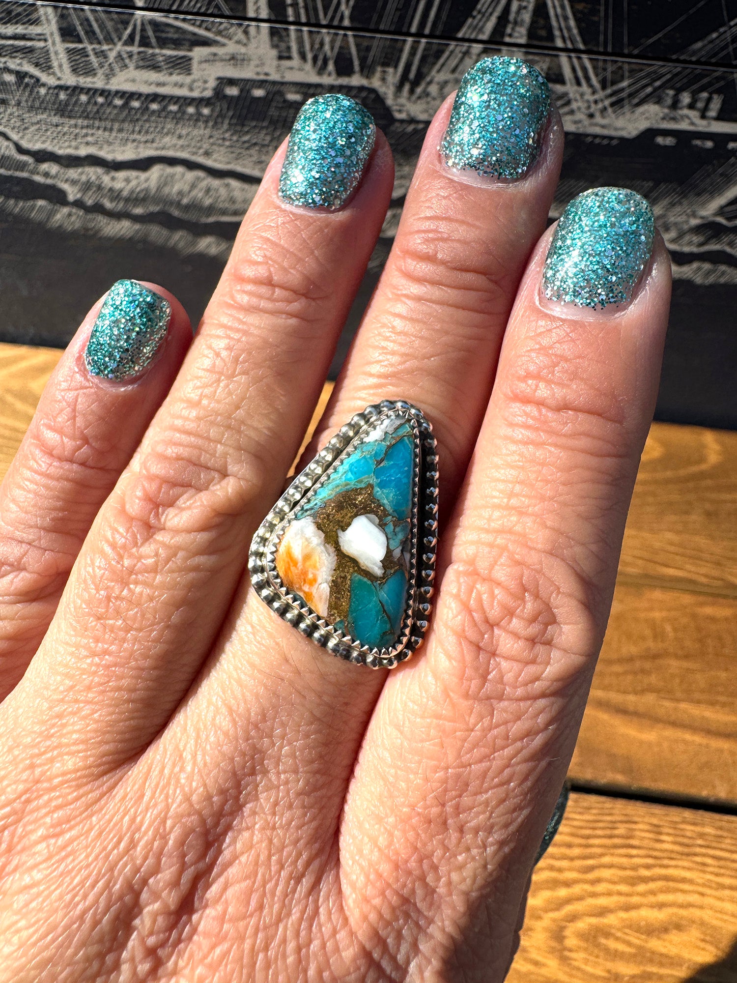 Spiny Oyster Kingman Turquoise ring size 9.5