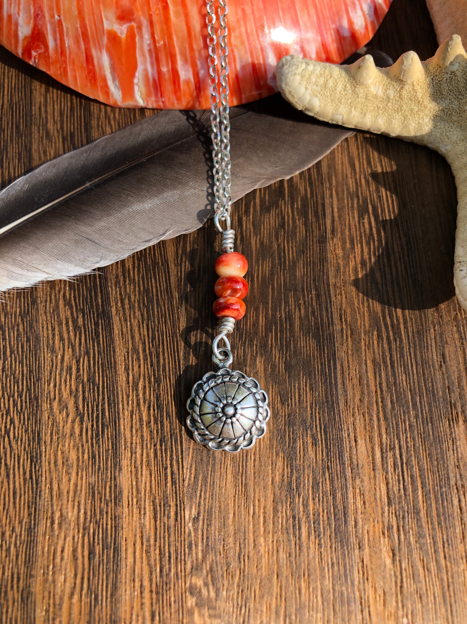 Featuring Spiny Oyster beads and solid Sterling Silver Charms.