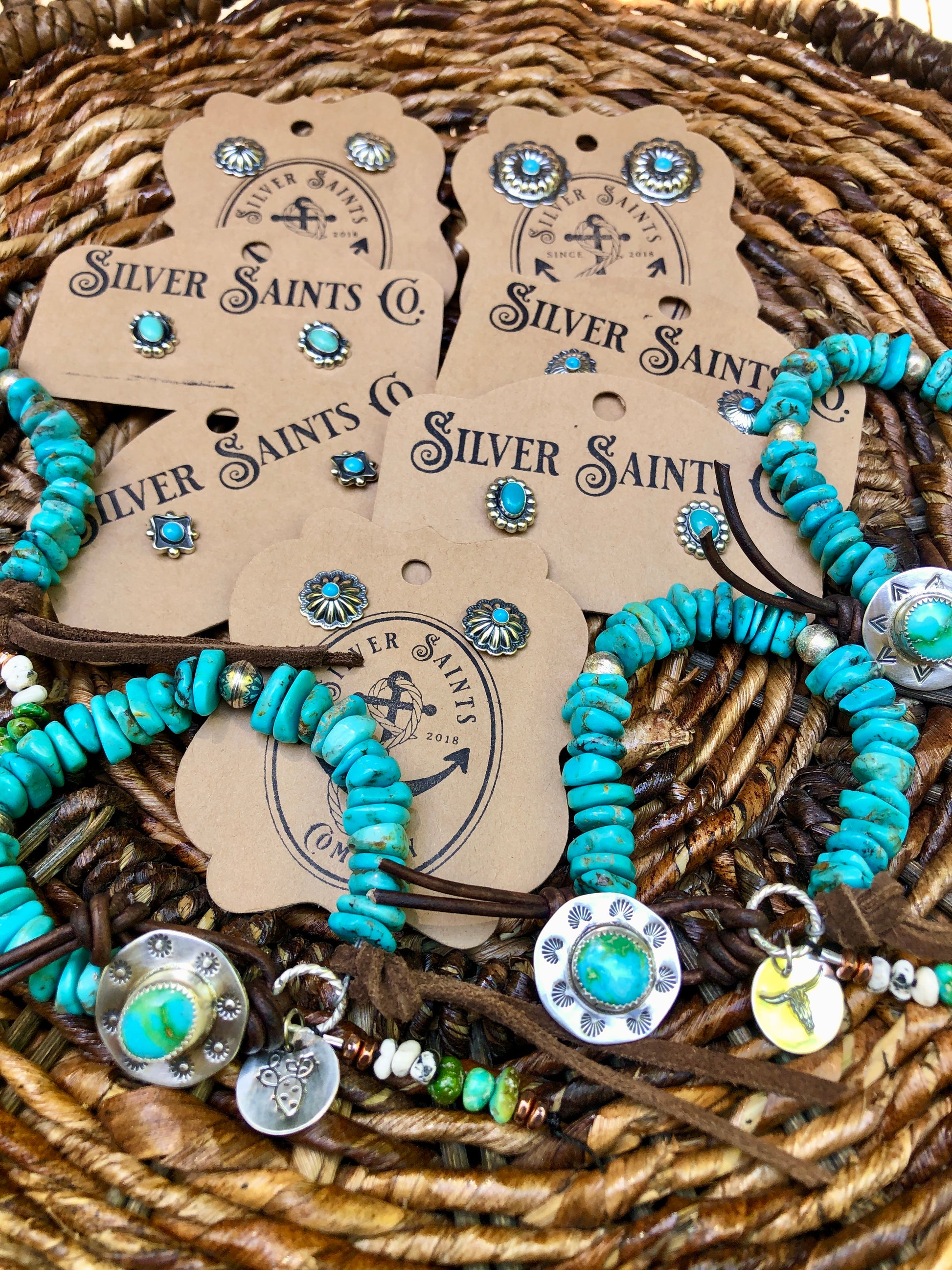 Sterling Silver Concho Earring Studs with Kingman Turquoise.
